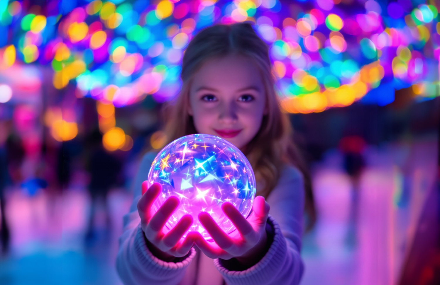 Eisbahn mit Licht-Setting für alle, die Kunst und Winterstimmung verbinden.