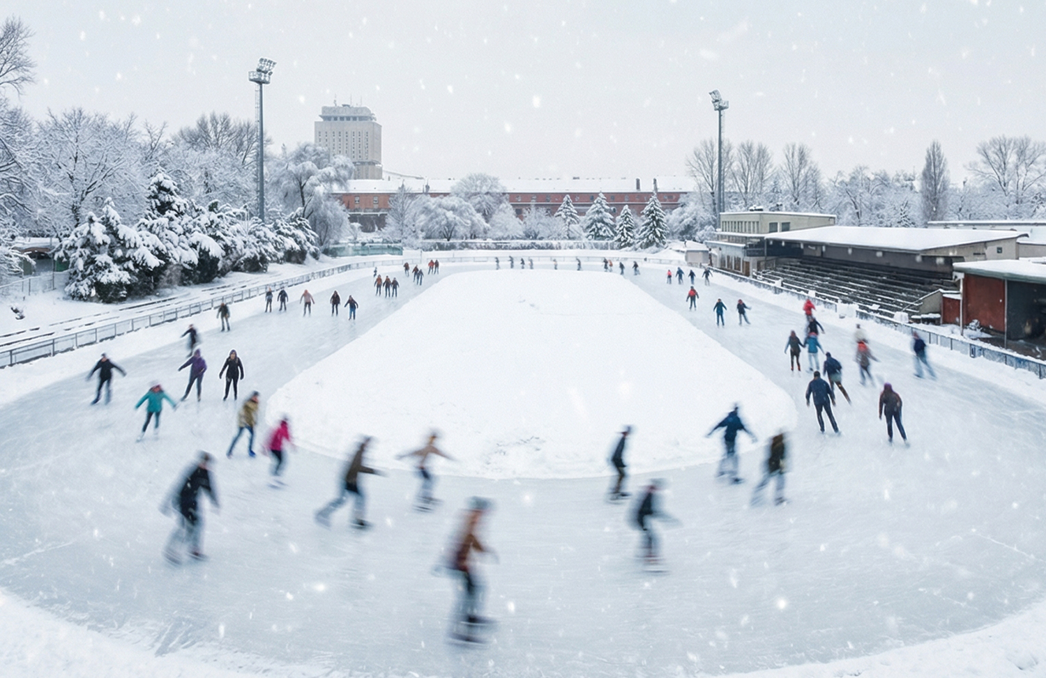 Große, familienfreundliche Eisfläche, ideal für alle, die entspannt fahren wollen.