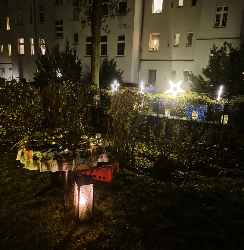 So startete die Adventszeit in der Scheffelstraße. Mit einer leuchtenden guten Tat der Mitglieder für die ganze Wohnanlage.