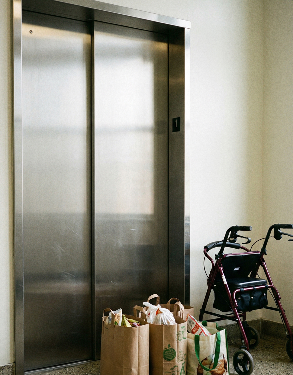 Uns hat diese Geschichte erreicht. Und sie beginnt mit zwei Einkaufstaschen, einem Sixpack Wasser und einem Rollator vor einem Fahrstuhl, der genau dann nicht wollte.