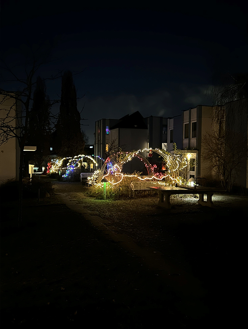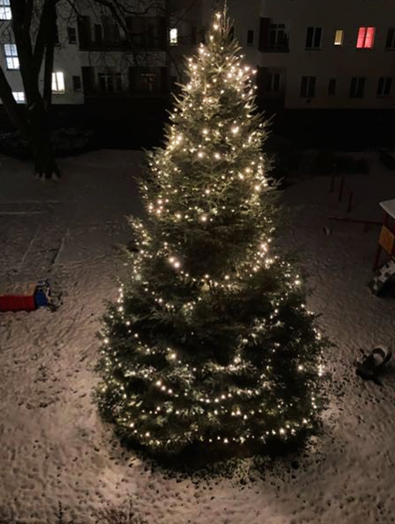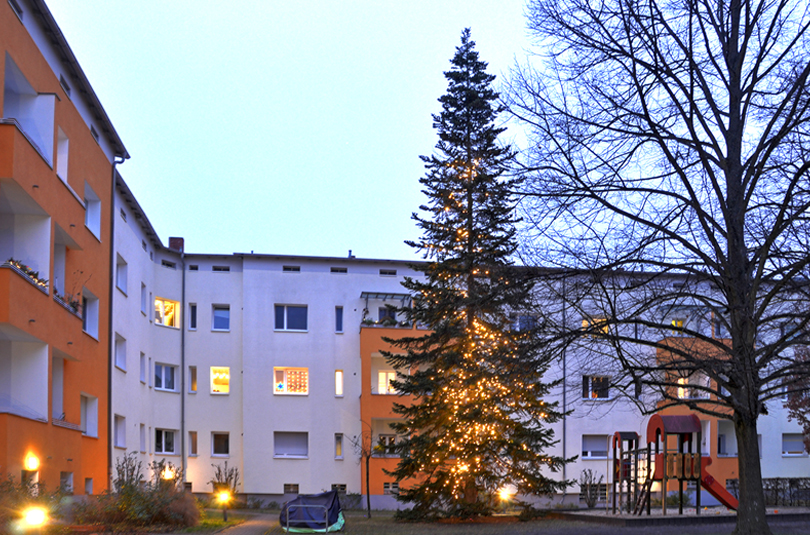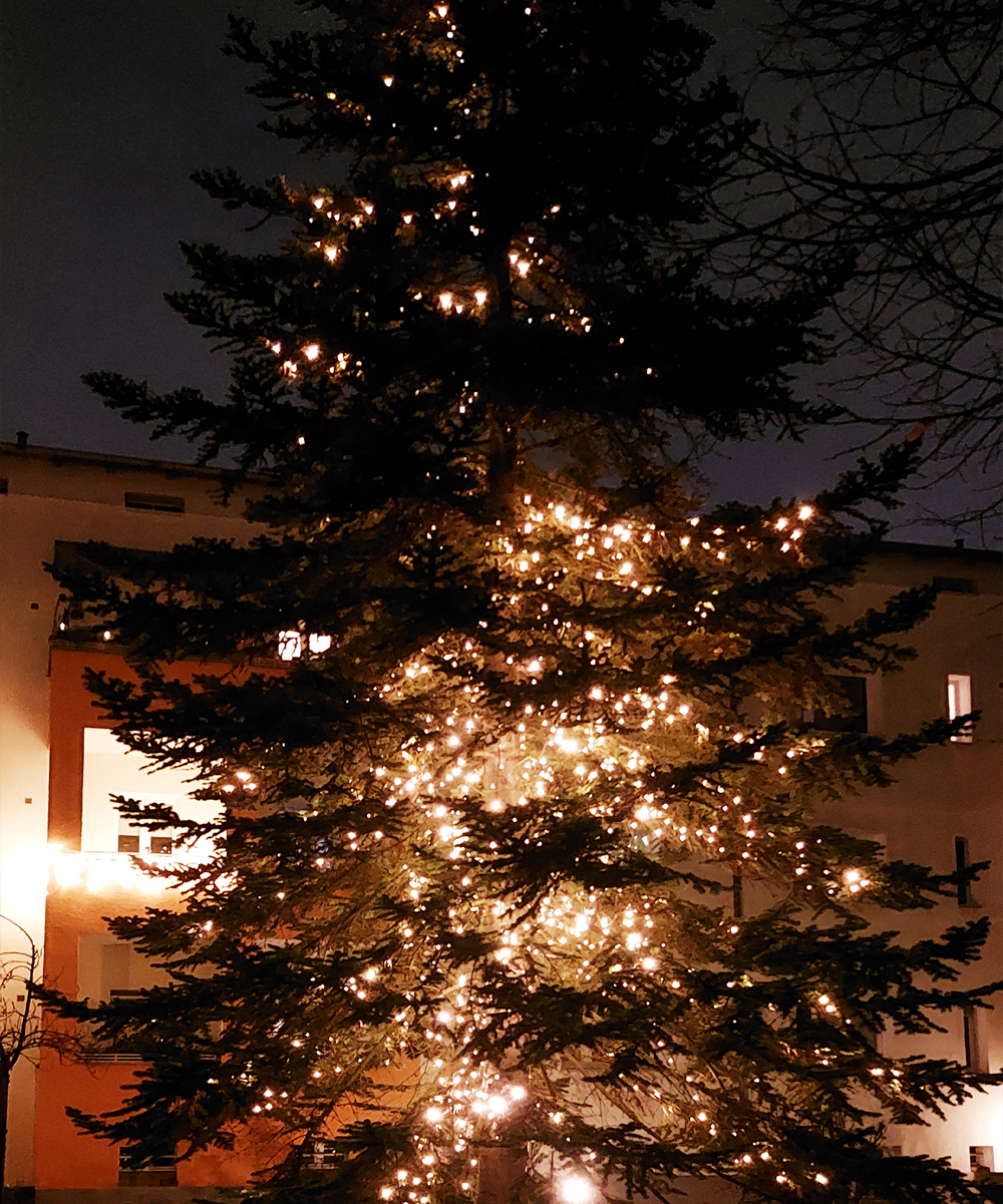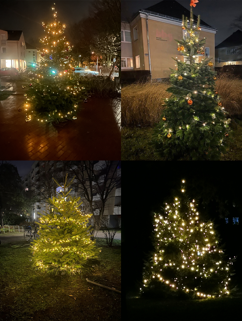 In den Innenhöfen, vor den Häusern und entlang der Wege stehen Weihnachtsbäume. Geschmückt von Mitgliedern, Hauswarten, Dienstleistern und Baumpflegern. Manche klassisch, andere individueller. Alle mitten im Alltag unserer Genossenschaft.