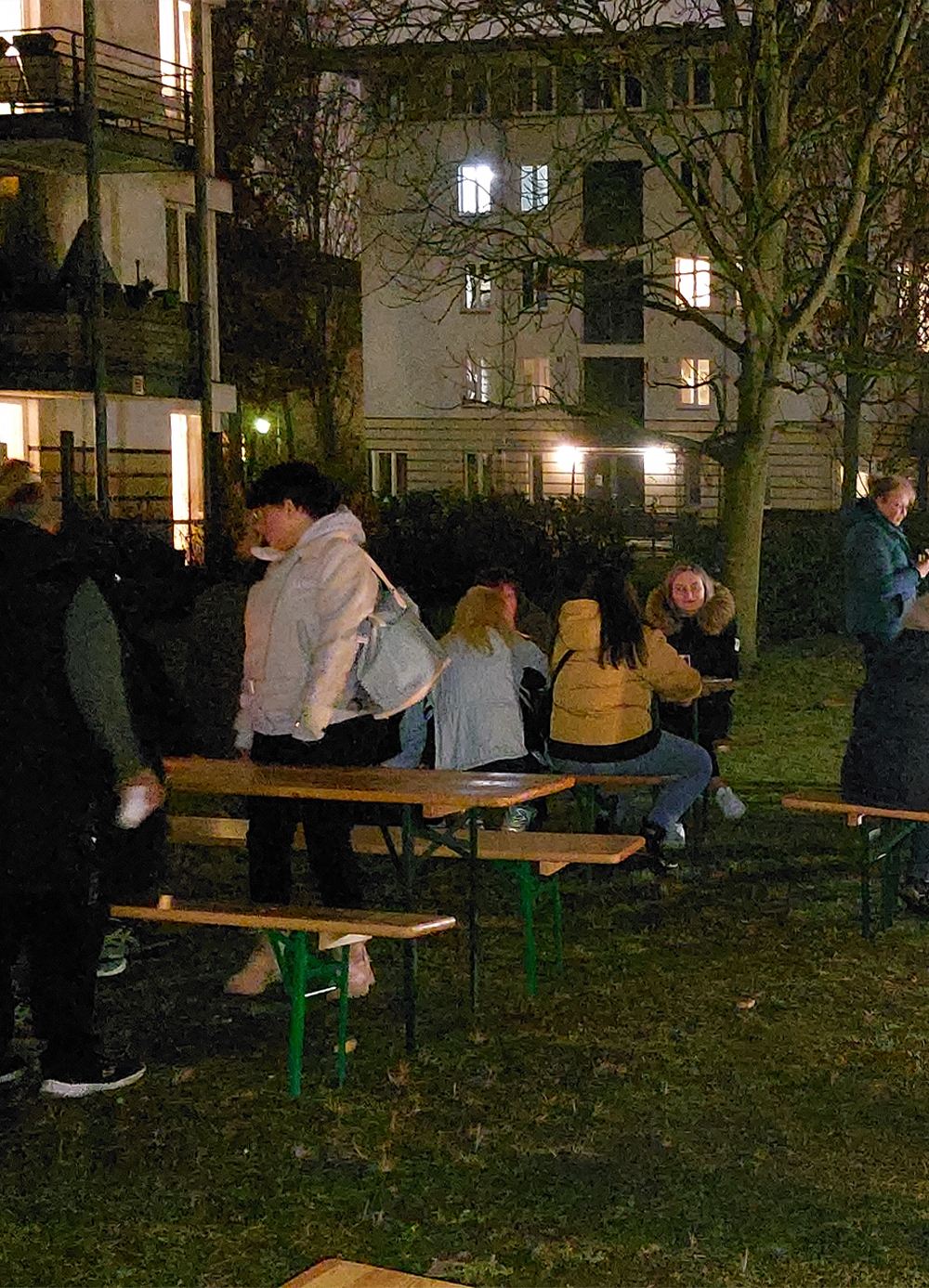 In der Berenhorststraße in Reinickendorf organisierten Mitglieder und Hauswarte ein Winterfest im Hof. Bänke und Tische wurden aufgebaut, Getränke vorbereitet und Essen mitgebracht. Ein Treffen im eigenen Wohnumfeld, selbst organisiert und gemeinsam gefeiert.