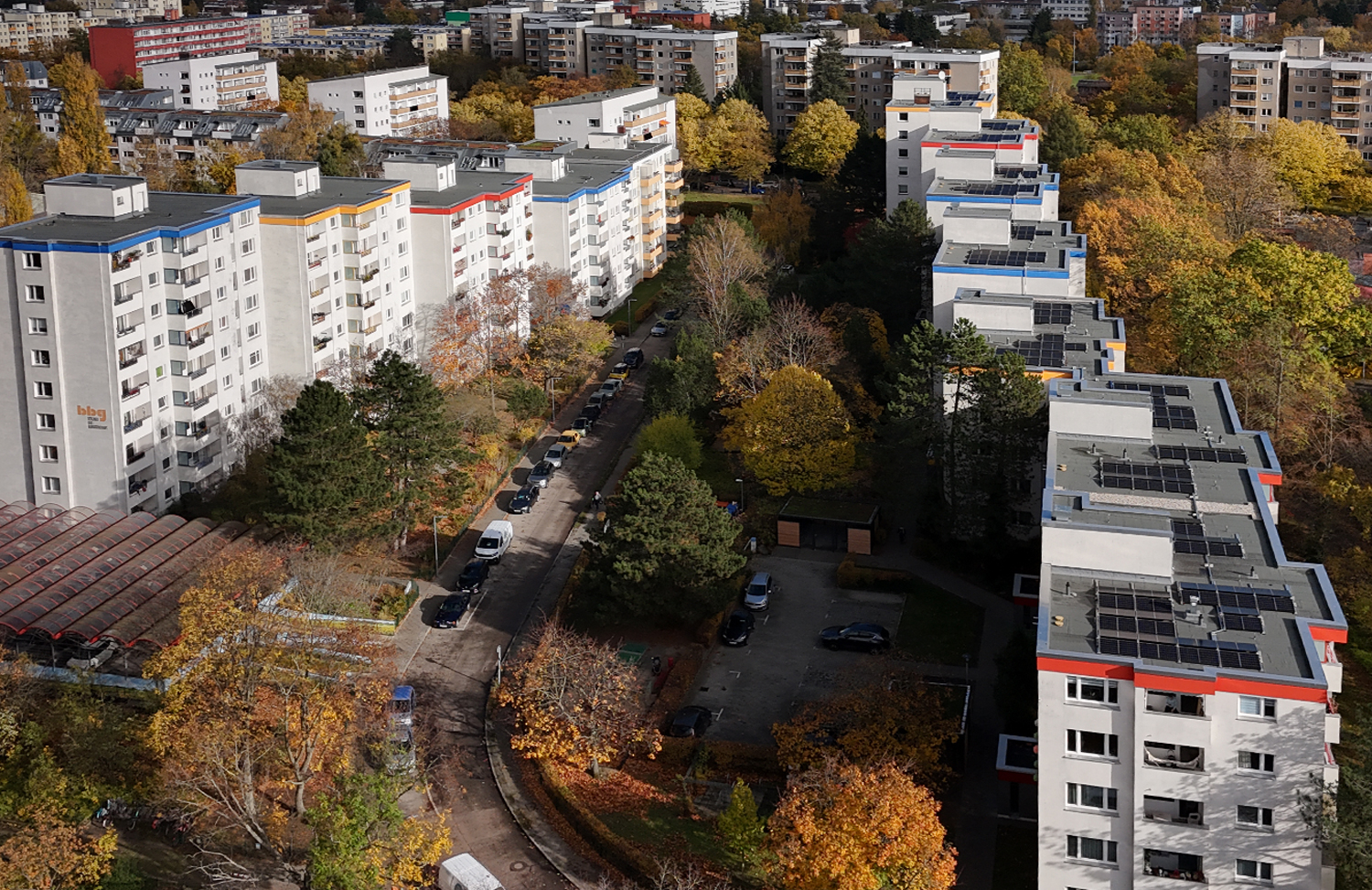 Photovoltaik für Mieterstrom. Strangsanierung. Neue Fenster. Barrierefreie Eingänge. Neues Pflaster. Schickes Grün.